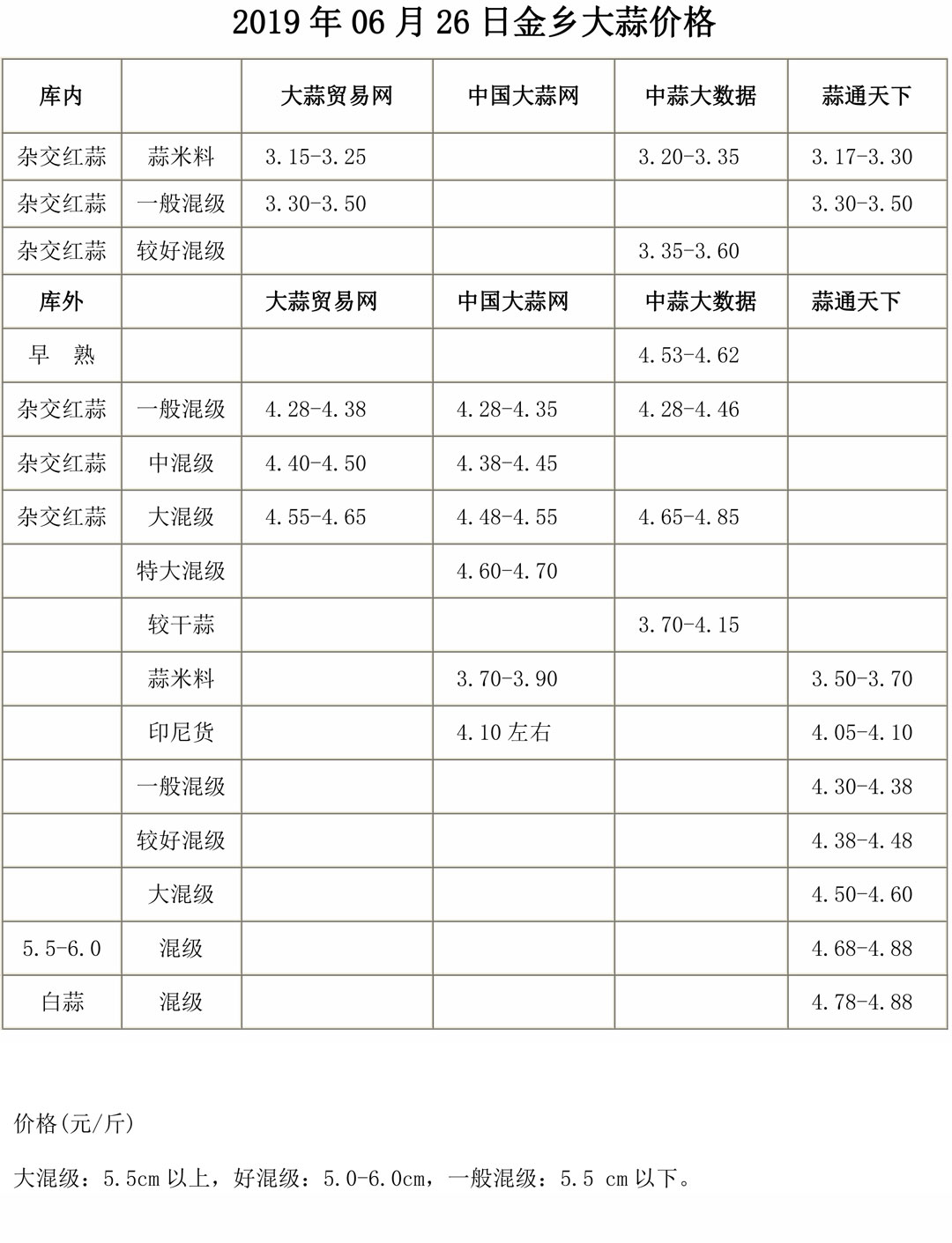 2019年6月26日金鄉(xiāng)大蒜價(jià)格