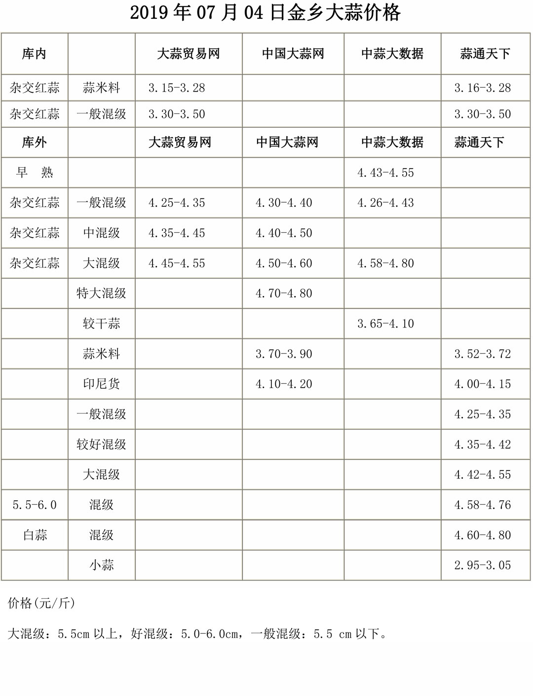 2019年7月04日金鄉(xiāng)大蒜價(jià)格