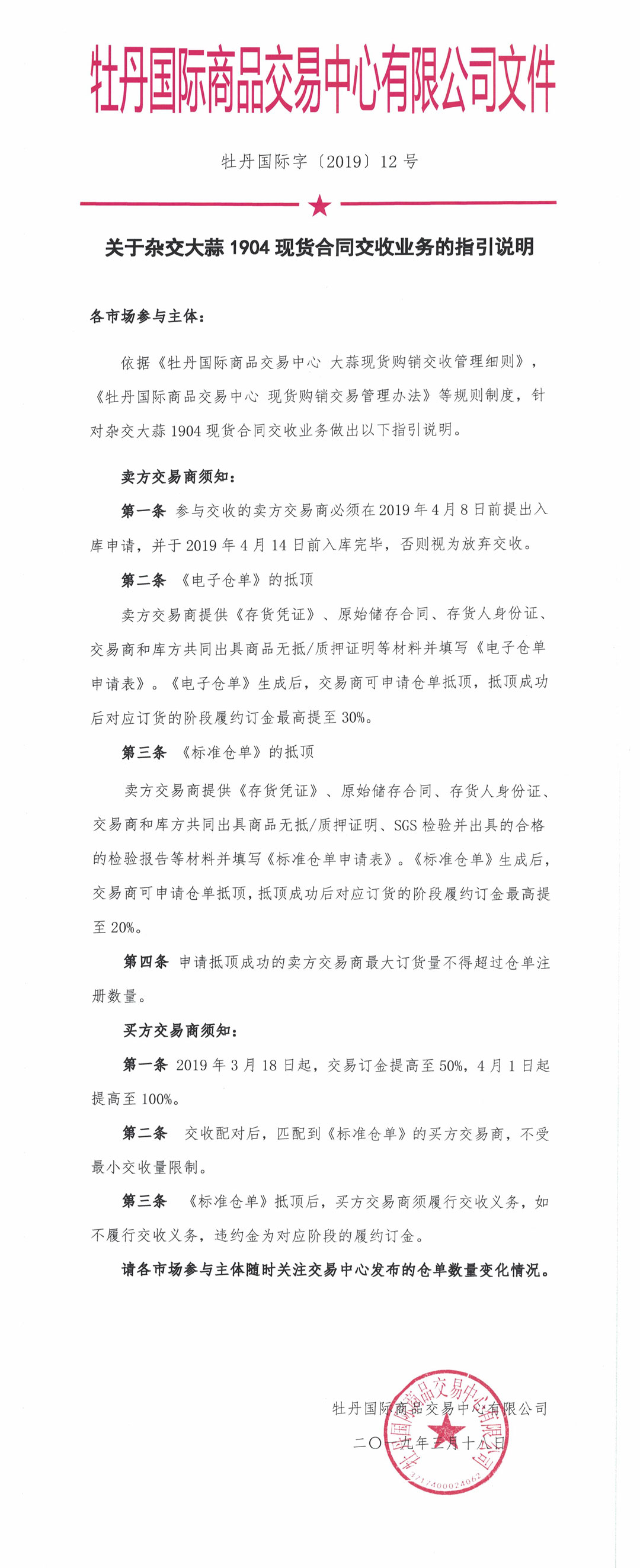 關于雜交大蒜1904現(xiàn)貨合同交收業(yè)務的指引說明