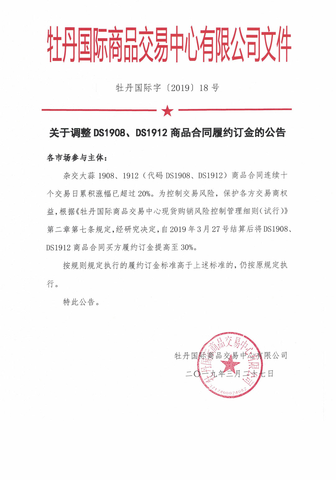 關于調整DS1908、DS1912商品合同履約訂金的公告