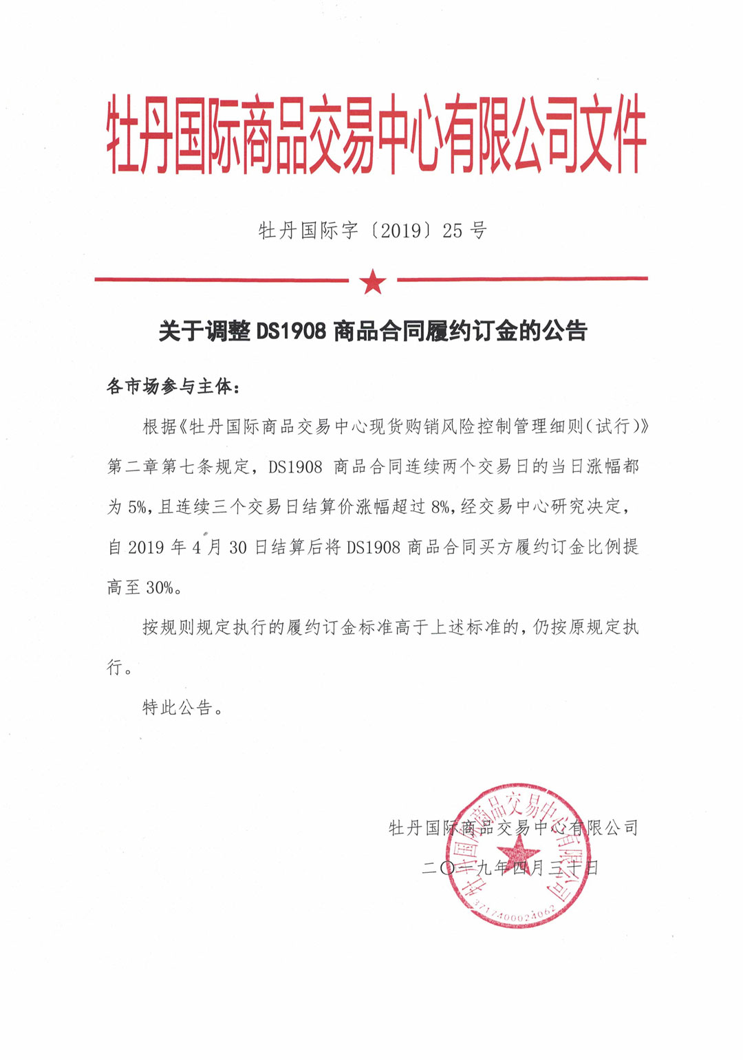關(guān)于調(diào)整DS1908商品合同履約訂金的公告