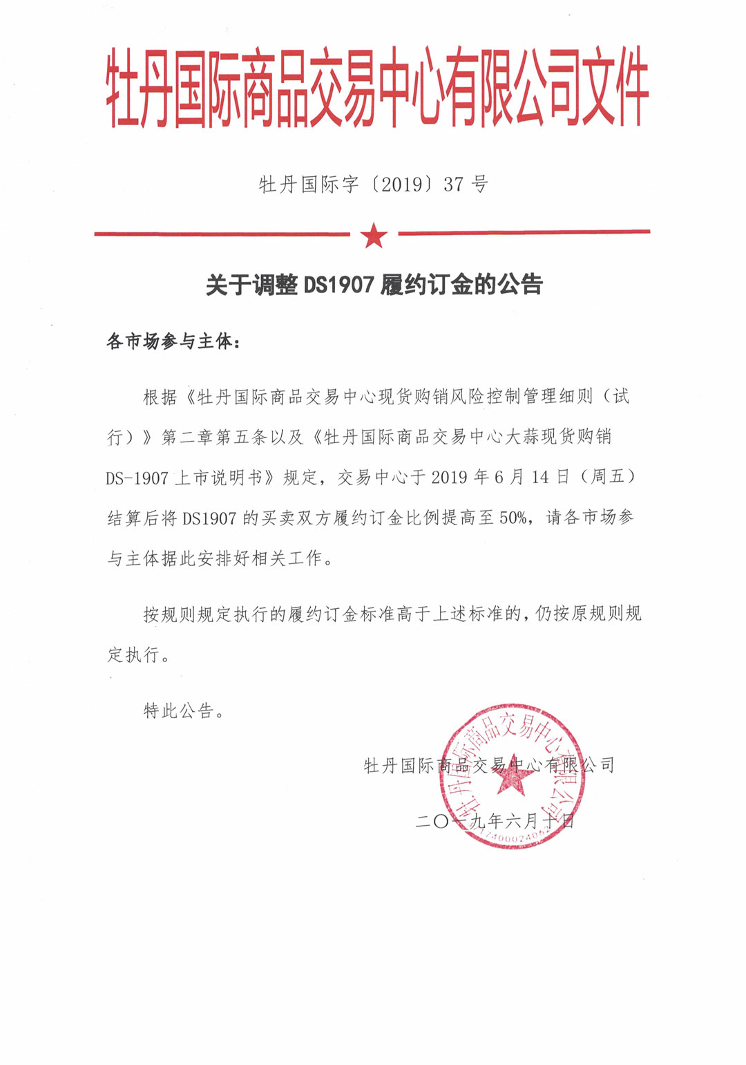 關(guān)于調(diào)整DS1907履約訂金的公告