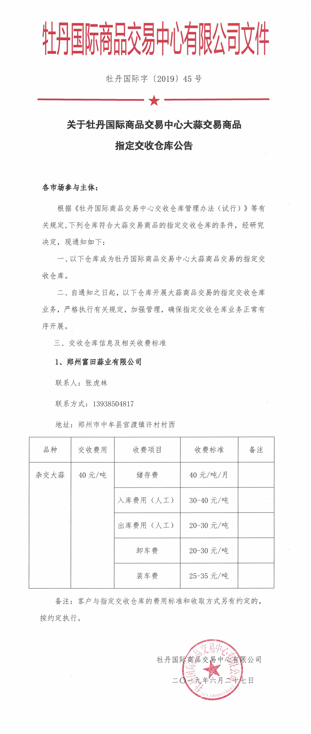 關(guān)于牡丹國際商品交易中心大蒜交易商品指定交收倉庫公告