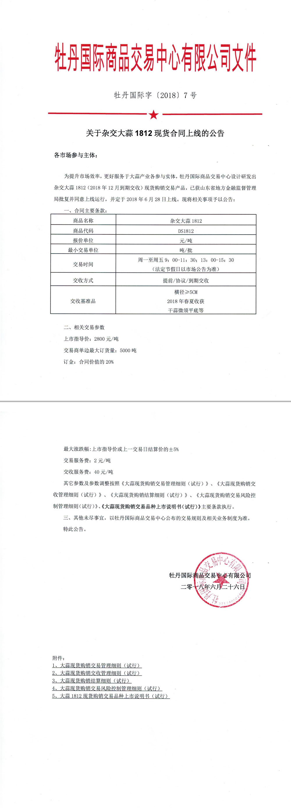關(guān)于雜交大蒜1812現(xiàn)貨合同上線的公告