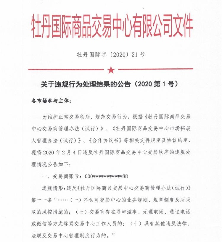 關于違規(guī)行為處理結果的公告(2020第1號)